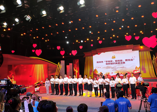 本网讯 今天(6月3日)上午,荆州市“学党史、知党恩、跟党走”党史知识竞赛决赛在荆州广电一楼演播大厅拉开帷幕,我院熊明晖、江希、赵雅茹三名学生党员组队,代表市直教育系统参赛,经过必答题和抢答题两个环节的比拼,最终荣获三等奖。(学生记者 谢承玉 摄影报道) (责任编辑 周芳)