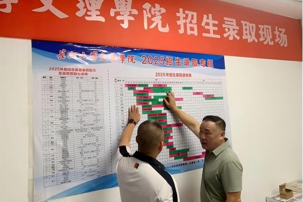 本网讯 七月流火,蝉鸣盈耳。7月21日上午,校长李兴祥来到招生录取工作一线,看望慰问奋战在招生录取岗位的教职员工,实地调研2025年招生录取工作进展情况,并对提升教育教学质量、打造招生品牌工作提出要求。