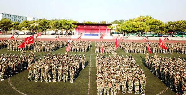 典礼上还进行了军训汇报表演。全体2019级新生组成24个军训连,向全院师生汇报14天的军训成果。队列表演、匕首操、刺杀操、棍术等表演赢得了全场阵阵掌声。尹家经宣读表彰决定,对军训过程中各方面表现优秀的集体和个人进行了表彰。院领导为获奖的集体和个人颁奖。孙细望代表学院向军训承训单位赠送锦旗。