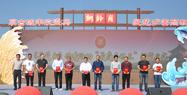 朱继平(左一)为“最亮丰收王”获奖代表颁奖