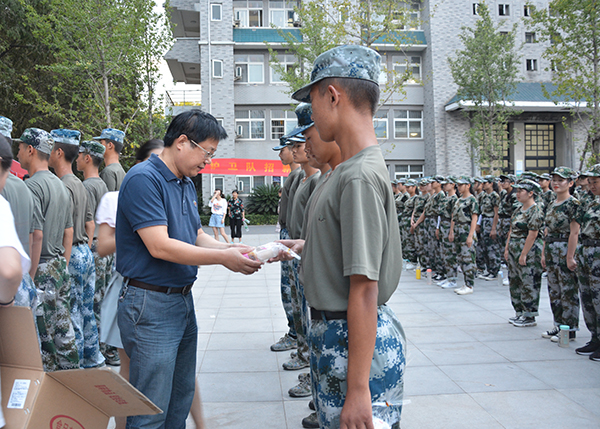 本网讯(记者 刘磊 吴秀丽)今天(9月13日)是一年一度的中秋佳节,党委书记朱继平、副院长尹家经、党委副书记孙细望分别到城中校区、西校区军训场地,慰问正在参加军训的2019级新生、教官和教职工。