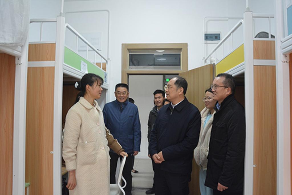 张幸平一行先后前往我院新校区图书馆、综合食堂,实地查看校园环境,听取王文凯作有关工作情况介绍,询问学院下一步工作计划和荆州大学城项目建设情况,对新校区校园环境打造、软硬件设施建设、开设专业发展规模等情况进行全面了解。张幸平一行还走进宿舍楼看望刚搬进新寝室的学生,与学生面对面交流,了解学生思想动态和学习生活情况。