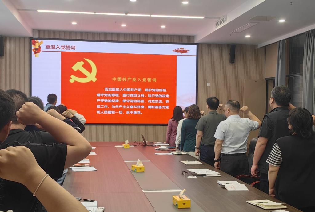 主题党日活动阶段,郭珍珍同志带领全体党员重温入党誓词,卢红艳同志领学《中国共产党章程》(第三章),全体党员围绕“如何以实际行动切实维护政治安全和意识形态安全”展开讨论。