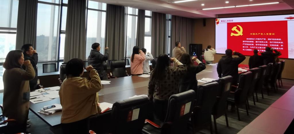 主题党日活动阶段,郭珍珍带领全体党员重温入党誓词,支部书记卢红艳领学《党章》(第二章)。全体党员干部结合工作实际,围绕深入学习贯彻党的二十届三中全会精神进行研讨交流。