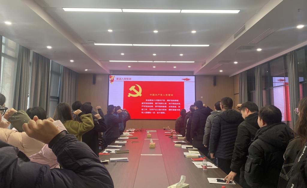 主题党日活动中,罗婷领誓入党誓词,党员共同学习《党章》第三章和《中国共产党湖北省第十二届委员会第八次全体会议公报》等内容。