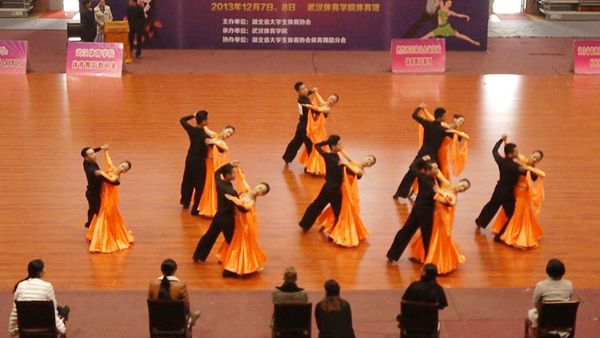 本网讯(记者 周芳 学生记者沈琦)12月8日,2013年湖北省高校大学生体育舞蹈大赛落幕,激扬的舞姿、飘扬的裙摆在武汉体育学院体育馆华丽绽放。