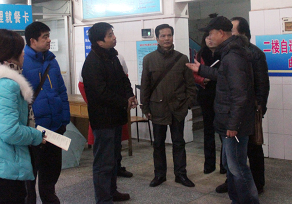 学院副院长郭睦庚(左三)一行检查开学前学生食堂运行情况