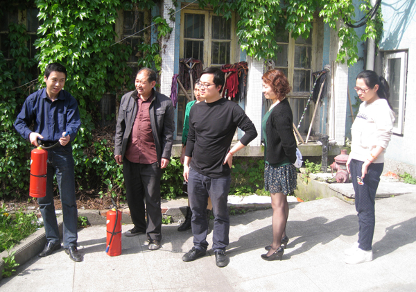 保卫科科长周志成演示如何正确使用消防设备