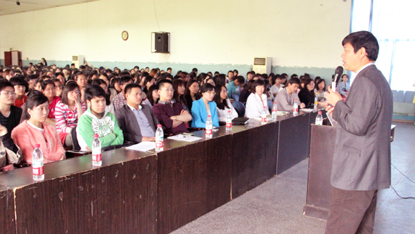 本网讯(通讯员 谢明霞)28日上午,学院工会大厅座无虚席,外语系邀全国电子商务专家胡新振为我院学子做了一场题为《外贸与电子商务》的讲座。