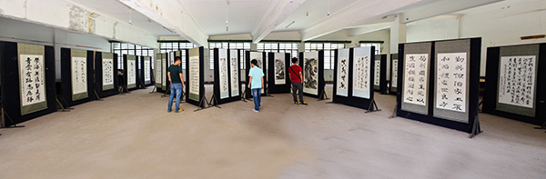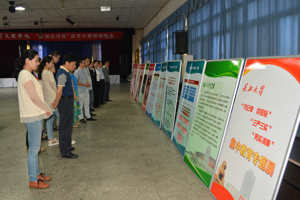本网讯(记者 刘磊 见习记者 陈玥)6月10日,“关工委”书画展在我院西校区4号教学楼大厅举办,学院领导高迎斌、汪邦柱与一批长江大学退休教师共同欣赏作品展。