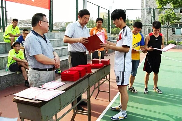 学生工作处处长解礼元(中)、基础课部主任李成军为球员颁奖