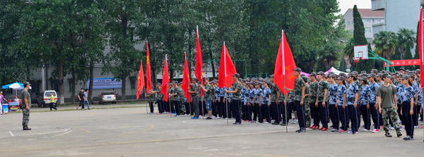 本网讯(记者 吴秀丽)9月7日上午,院党委书记王金琼在西校区和城中区为军训方队授旗,宣布为期13天的2015级新生军训正式开始。