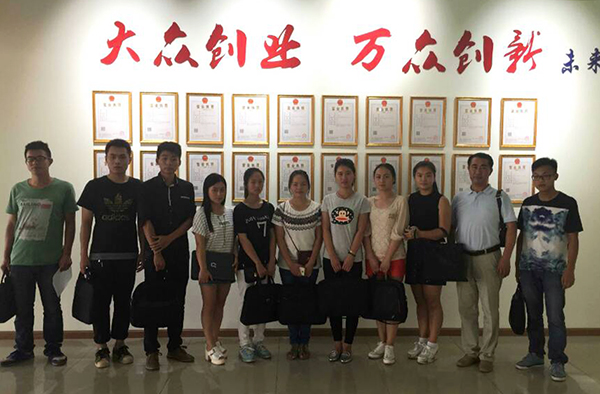 梅平(右四)、孙细望(左二)与2015级新同学合影