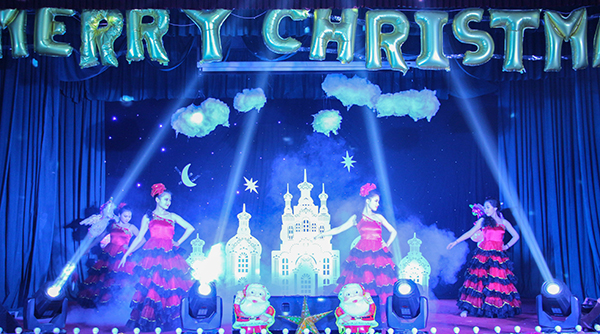 本网讯(见习记者 柳青青 苏小雨 记者 刘磊)12月24日晚,外语系2015年圣诞晚会在工会大厅举行。
