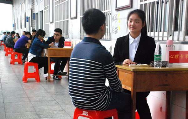 本网讯 5月22日下午,人文与传媒系应用心理学专业33名学生走进荆州市北门中学,以个体咨询和图像排列心理分析的方式,为该校高三学生进行心理压力疏导。