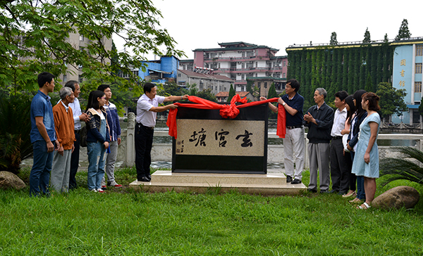本网讯(记者 汤波 刘磊)在蓝天明澈的校园里,茵茵绿草簇拥着新落成的玄宫塘碑,在微波荡漾的水塘旁,玄宫塘碑格外醒目。