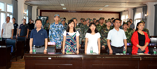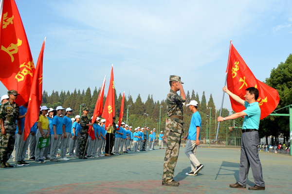 本网讯(记者 吴秀丽)9月13日上午,院党委书记王金琼在西校区和城中校区为军训方队授旗,宣布2016级新生军训正式开始。