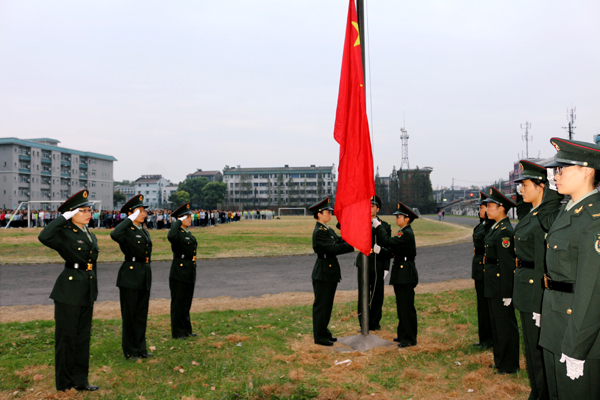 本网讯 10月10日6时45分,我院在城中校区田径运动场举行纪念红军长征胜利80周年升旗仪式,国旗护卫队旗手们踏着整齐的步伐护卫国旗入场,伴随着庄严的国歌,鲜艳的五星红旗缓缓升起,全体人员行注目礼。