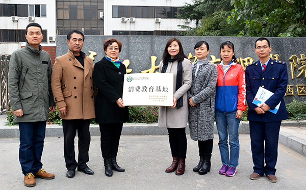 我院副院长李琴(左三)代表学院接受“消费教育基地”牌匾