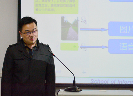 本网讯(见习记者 明蒙 明松 李晨璐)11月17日下午,长江大学文学院吴松教授来我院讲学,以“语言的和谐性”为题作了专题讲座,人文与传媒系主任张社宁与该系百余名学生现场聆听。