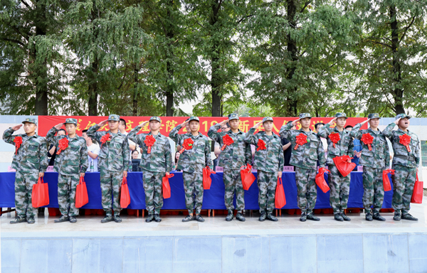本网讯(记者 刘磊)今天(9月7日)下午,我院党委书记朱继平在城中校区和西校区为军训方队授旗,宣布2019级新生军训正式开始。