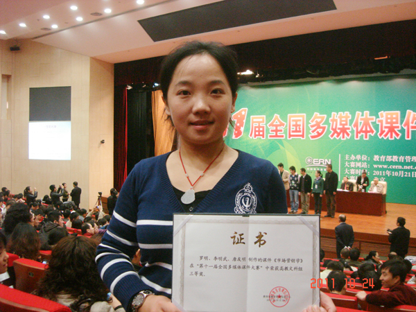 本网讯(通讯员 赵磊 罗明)10月24日,由教育部主办的“第十一届全国多媒体课件大赛”在北京落下帷幕,我院教师制作的课件《市场营销》和《广告学》分获高教文科组三等奖和优秀奖。